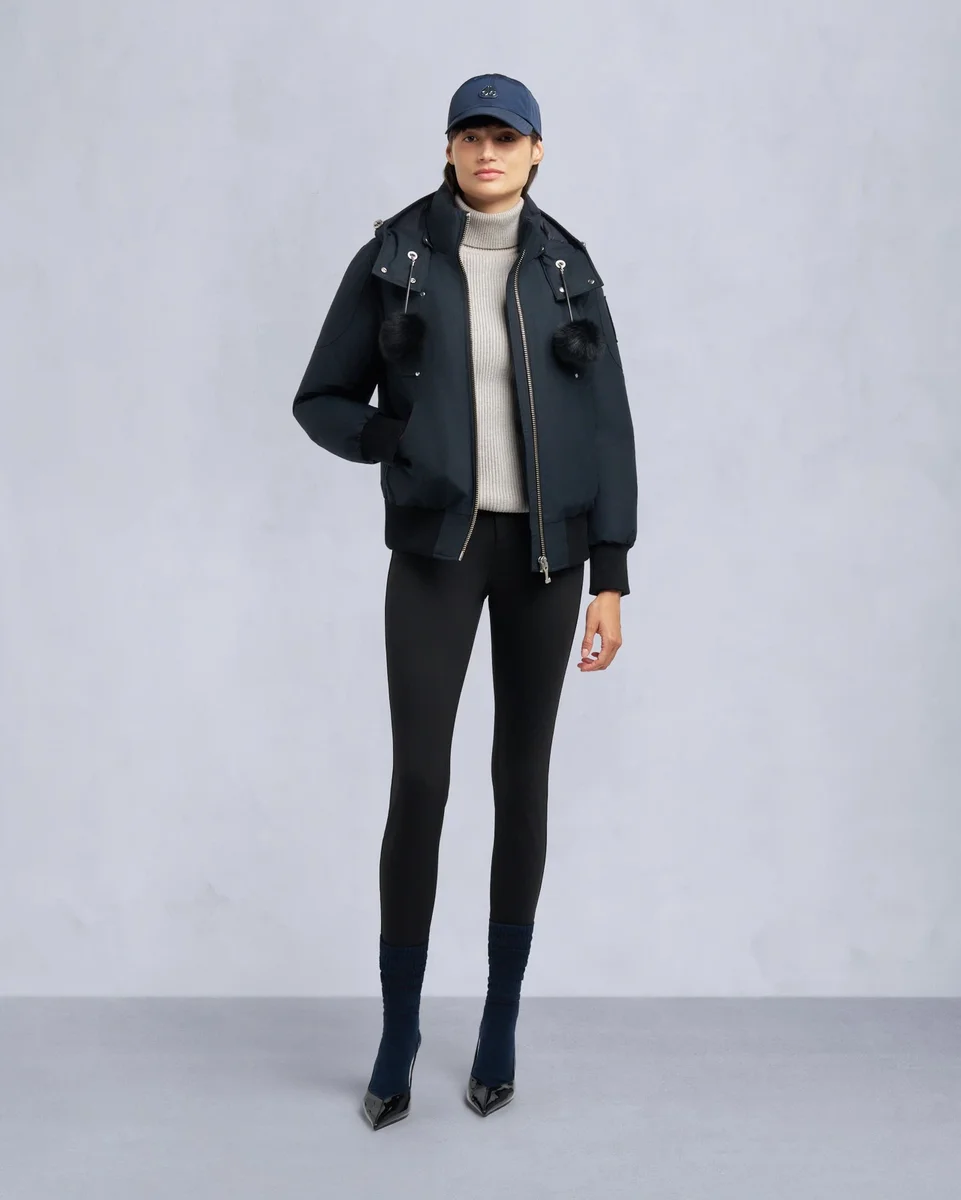 - Avtakbar hette med avtakbar shearling-kant og pomponer